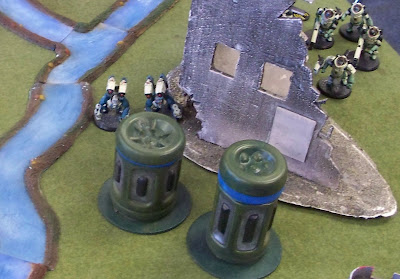 The Kaptars in the ruin on the right side of the board moved up onto the second floor and opened fire on the badly damaged Nimit, inflicting just enough damage to destroy the Golgoth and leave Urash standing there feeling quite vulnerable.