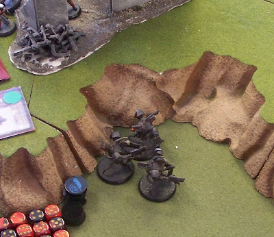 My Banes were next, moving into cover beside the hill on the left side of the board. No good shots were available yet and I didn't feel like losing them this early in the game so cover was the way to go.